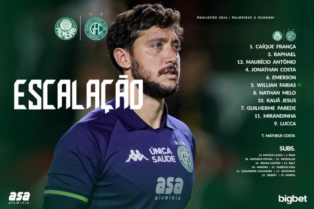Palmeiras x Guarani: Saiu as escalações das equipes; veja